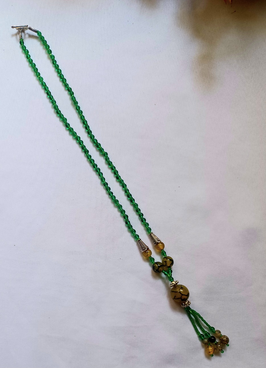 گردنبند با سنگ کوارتز سبز و زئوسیت